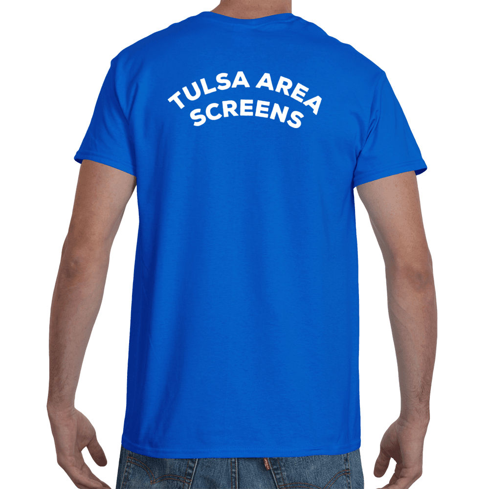I designed the art and created mock-ups for visualization. The Tulsa Area Screen shirts will be worn by staff.