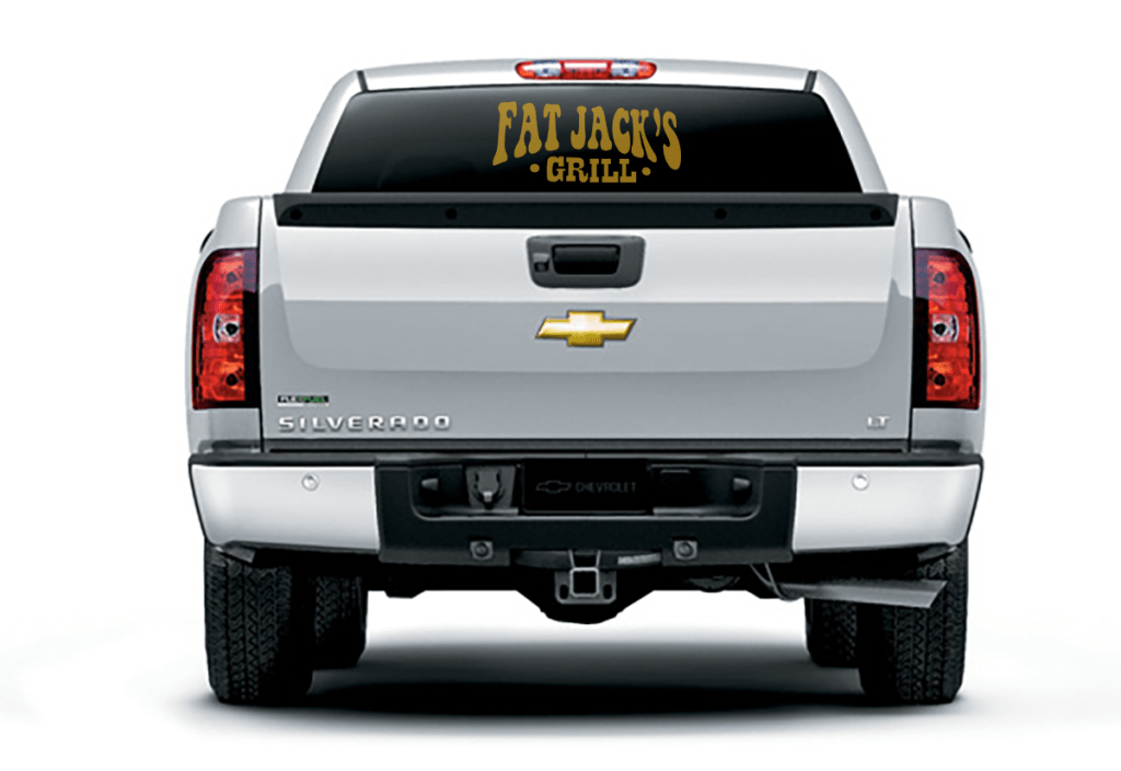 After creating a vector symbol and typographic logo, I created merchandise for Fat Jacks Grill. The shirts and hats will be worn by staff. The car decals are for the owner of the business’s truck and for the menu board on the food truck.