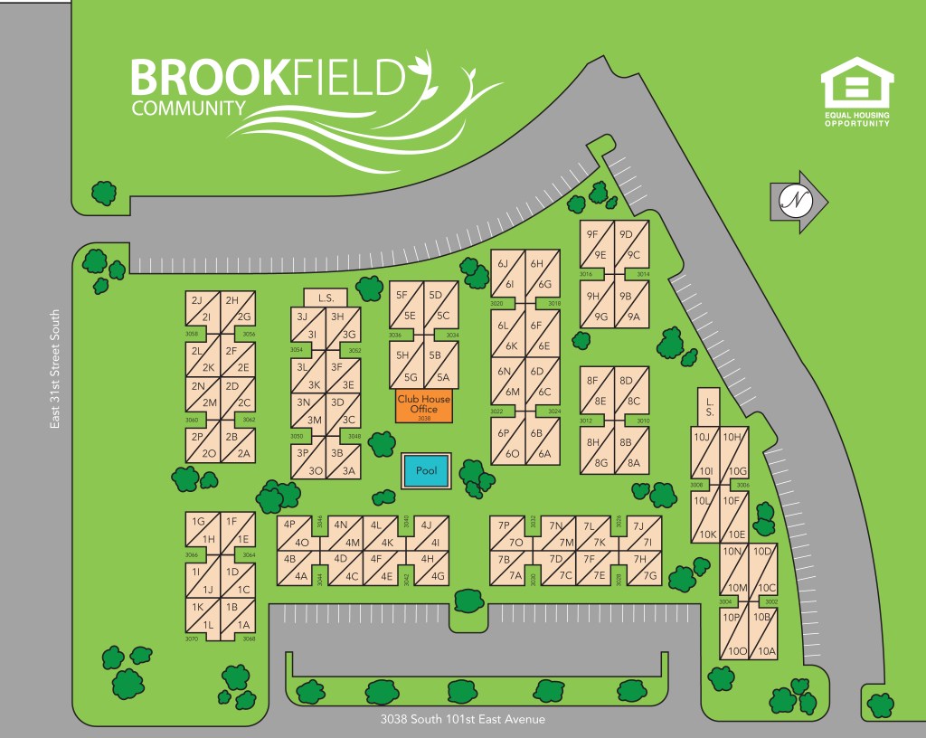 The Brookfield Community Apartments Site Map was customized per the request of the manager. Each room number is labeled as well as surrounding streets.
